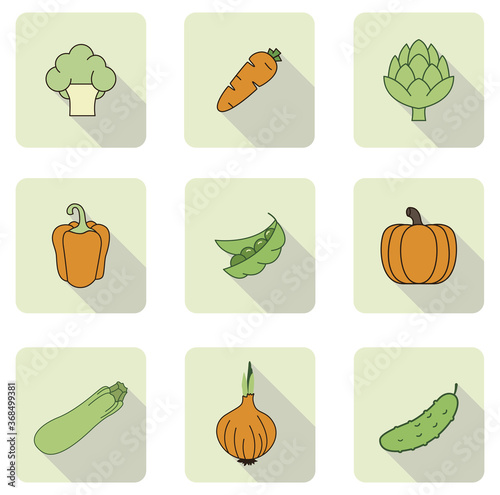 Green and orange vegetables flat icons set