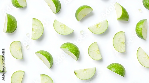 green apple with slices isolated on a white