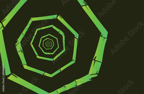 Green bamboo stalks forming deep perspective hexagon tunnel