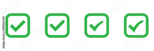 Green check mark icon. Green check tick mark icon set isolated on white background.