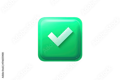 Green Checkmark Icon on Transparent Background with Soft Shadow and Reflective Surface