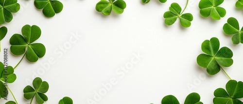 Green Clovers Frame a Central White Space for Irish Celebration and Festive Background Images