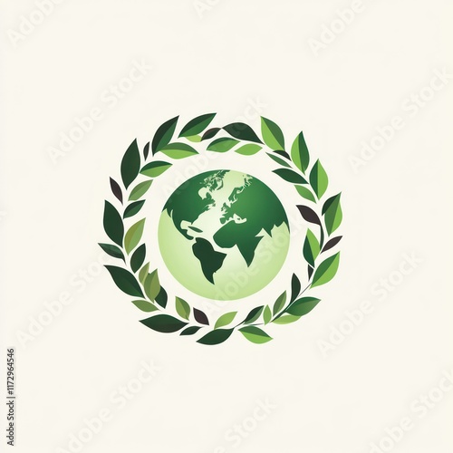 Green Earth Encircled by Lush Green Leaves