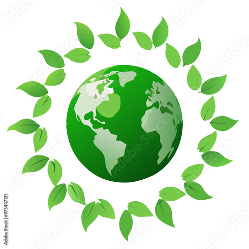 Green Earth Icon Surrounded by Leaves Representing Global Environmental Conservation