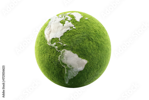 Green earth with grass texture highlighting continents and nature conservation, cut out