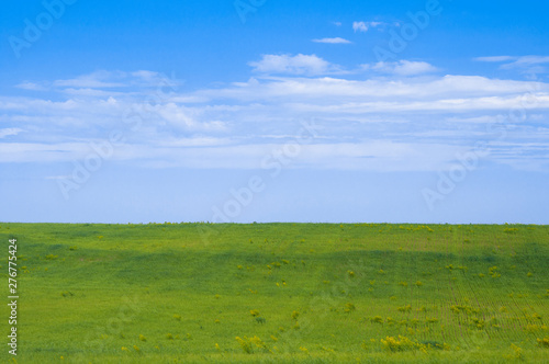 green field and blue sky with clouds