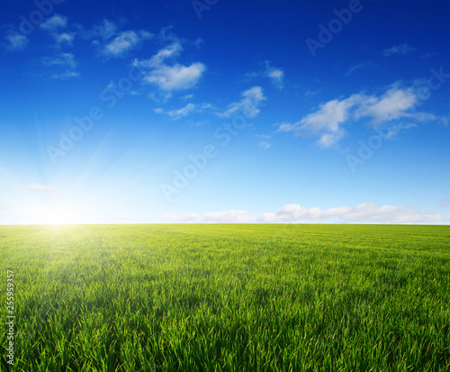Green field and sun.