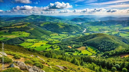 Green Galicia landscape seen from mountain top