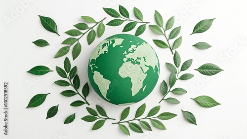 Green Globe Earth Surrounded by Lush Green Leaves Eco Friendly Concept Image