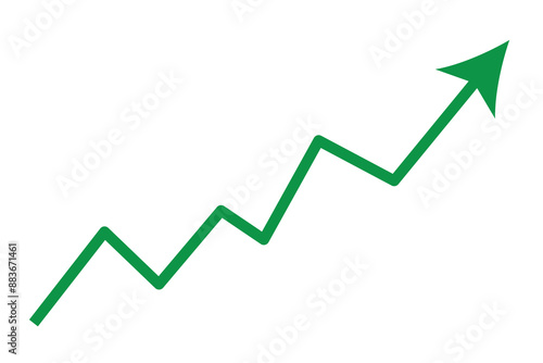 Green graph arrow icon. Growing business arrow. Upward stepping green arrow. Growth Bar green step to growth success Vector illustration.
