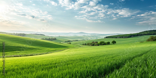 Green Grass Field Landscape Isolated on a White Background for Nature Scenes