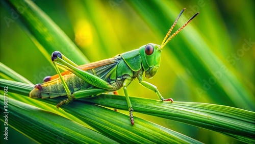 Green Grasshopper on Lush Green Grass - High-Resolution Stock Photo