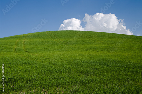green hill with white clouds