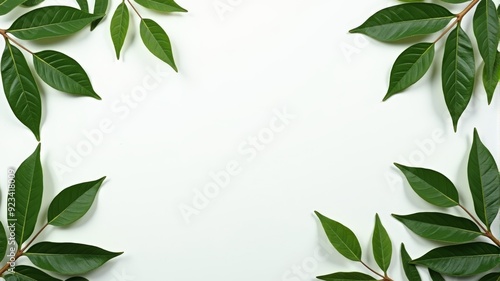 Green Leaf Border on White Background for Nature-Themed Designs and Invitations