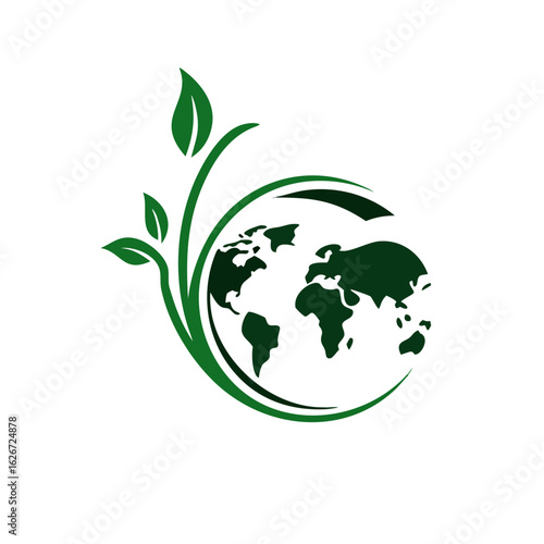 Green leafs and globe Eco icon. Unique global and natural, organic logotype design template