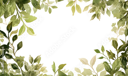 Green leaves as a frame with empty white background space for text, Generative AI