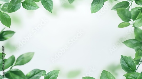 Green Leaves Frame on White Background