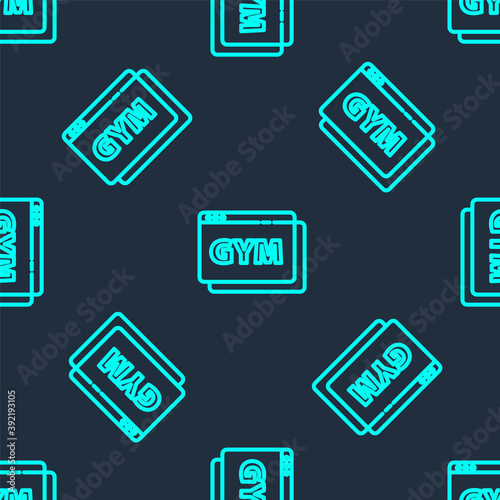 Green line Online fitness and training icon isolated seamless pattern on blue background. Vector.