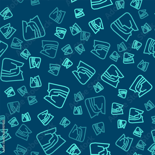 Green line Waterfall icon isolated seamless pattern on blue background. Vector