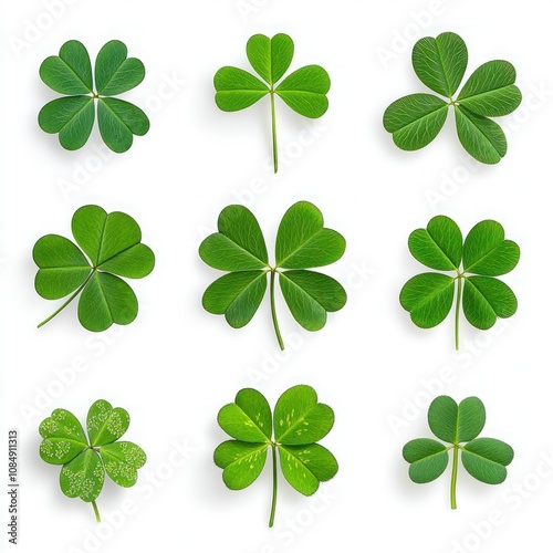 Green Lucky Clover and Shamrock Collection Set for St. Patrick's Day Celebrations - Isolated on White Background