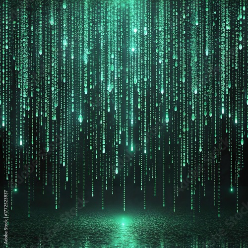 Green matrix code digital rain falling pattern, futuristic cyber technology background, binary data stream abstract design