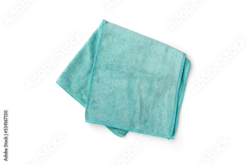 Green microfiber towel for car salon isolated on white background.