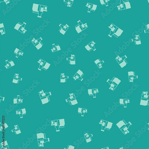 Green Milk product icon isolated seamless pattern on green background. Vector