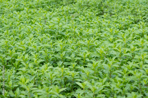 Green mint plant grow at vegetable garden