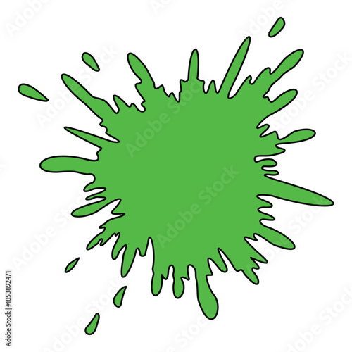 Green Paint Splatter Illustration – Dynamic Impact Design with Irregular Droplets and Streaks