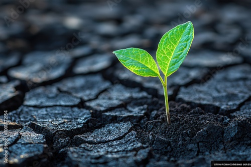 Green Plant Emerging from Dry Cracked Soil