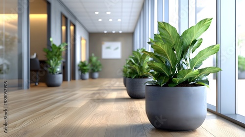 Green Plants in Office Hallway