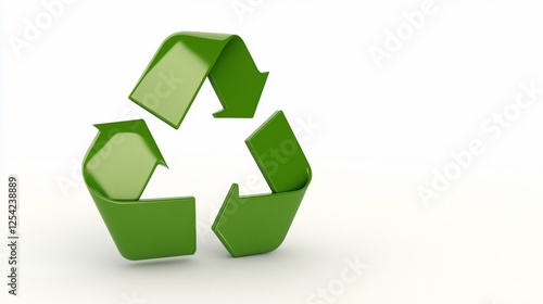 Green recycle symbol 3D render, white background, eco-friendly concept, website banner