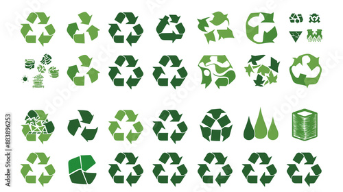 Green Recycle Symbol Variations for Environmental Awareness