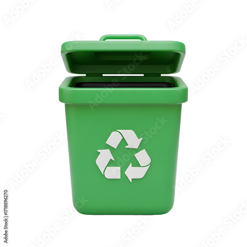 Green Recycling Bin with Open Lid and Recycling Symbol, Transparent Background