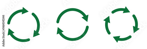 Green round recycle icons set, Simple illustration of green round circle arrow vector icon. Green round arrow icon, green recycle or circular arrow vector.