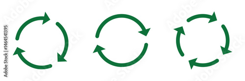 Green round recycle icons set, Simple illustration of green round circle arrow vector icon. Green round arrow icon, green recycle or circular arrow vector.