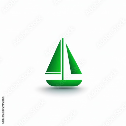 Green sailboat icon on white background. Simple, minimalist design with subtle shadow