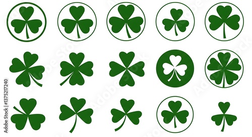 Green Shamrock Collection Irish Symbols Vector Graphics AI Generated