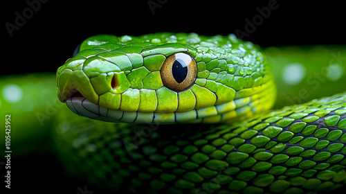 Green snake with a yellow eye