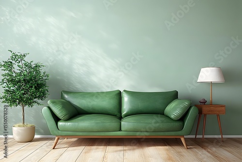 Green Sofa in a Modern Minimalistic Living Room with Minimalist Decor Style AI Generated