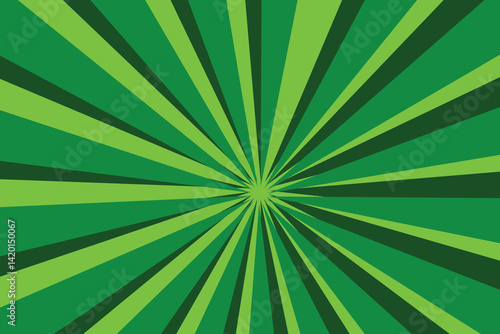 Green sun rays background with halftone. Cartoon funny retro pattern strip mock up.