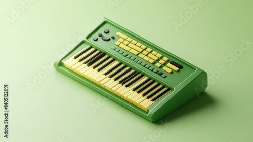 Green synthesizer keyboard, music studio, pastel background, digital art, website banner