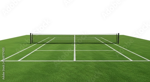 Green Tennis Court Isolated - A pristine green tennis court with a net, isolated on a white background. Perfect for sports, recreation, and fitness