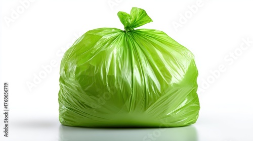 Green Trash Bag Isolated on White Background with Eco-Education Theme