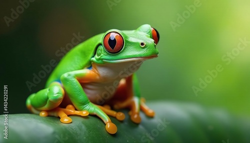 Green tree frog perched on white, vibrant skin, fauna, tree frog
