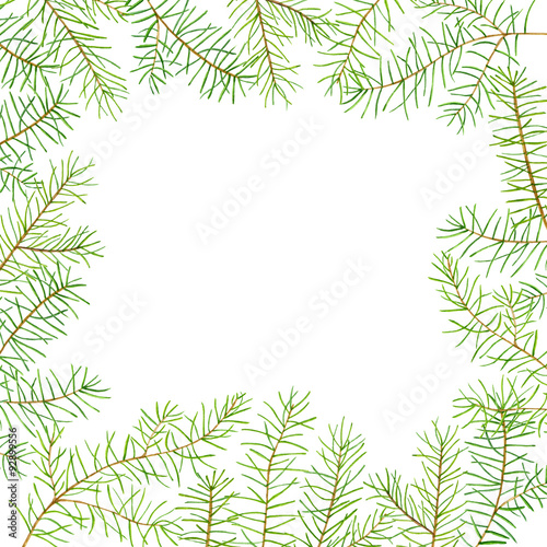 Green watercolor frame pine branches