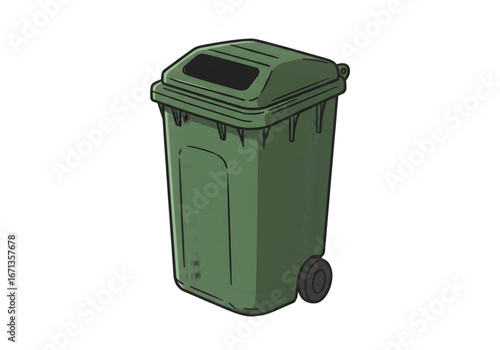 Green Wheeled Waste Bin Recycling Waste Management Solution on transparent background