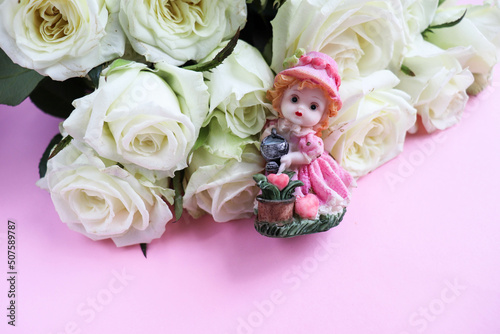 greeting card layout. bouquet of white roses