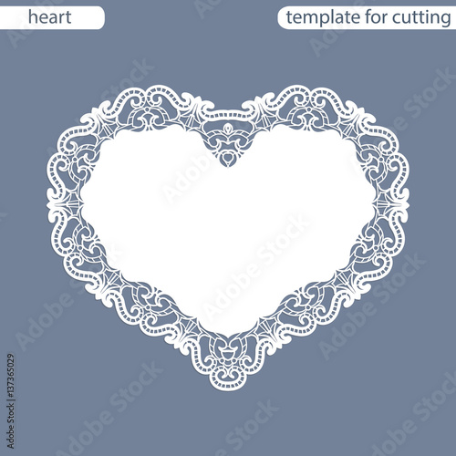 Greeting card with openwork border, paper doily under the cake, template for cutting in the form of heart, valentine card, wedding invitation, decorative plate is laser cut, vector illustrations.