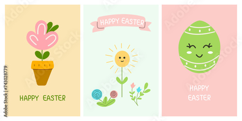 Greeting cute cards for the Easter holiday. Egg, spring flowers. For posters, cards, scrapbooking, stickers